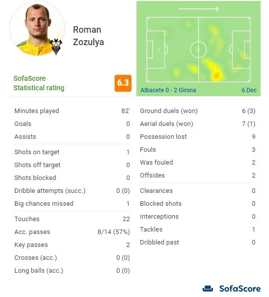 Гости во втором тайме спокойно забили Альбе два гола и забрали три очка. В стартовом составе хозяев вышел на поле Роман Зозуля, но украинец сумел "отличиться" только желтой карточкой в первом тайме и был заменен на 82-й минуте. Статистический портал SofaScore "наградил" Романа самой низкой оценкой среди игроков Альбасете, вышедших в старте.