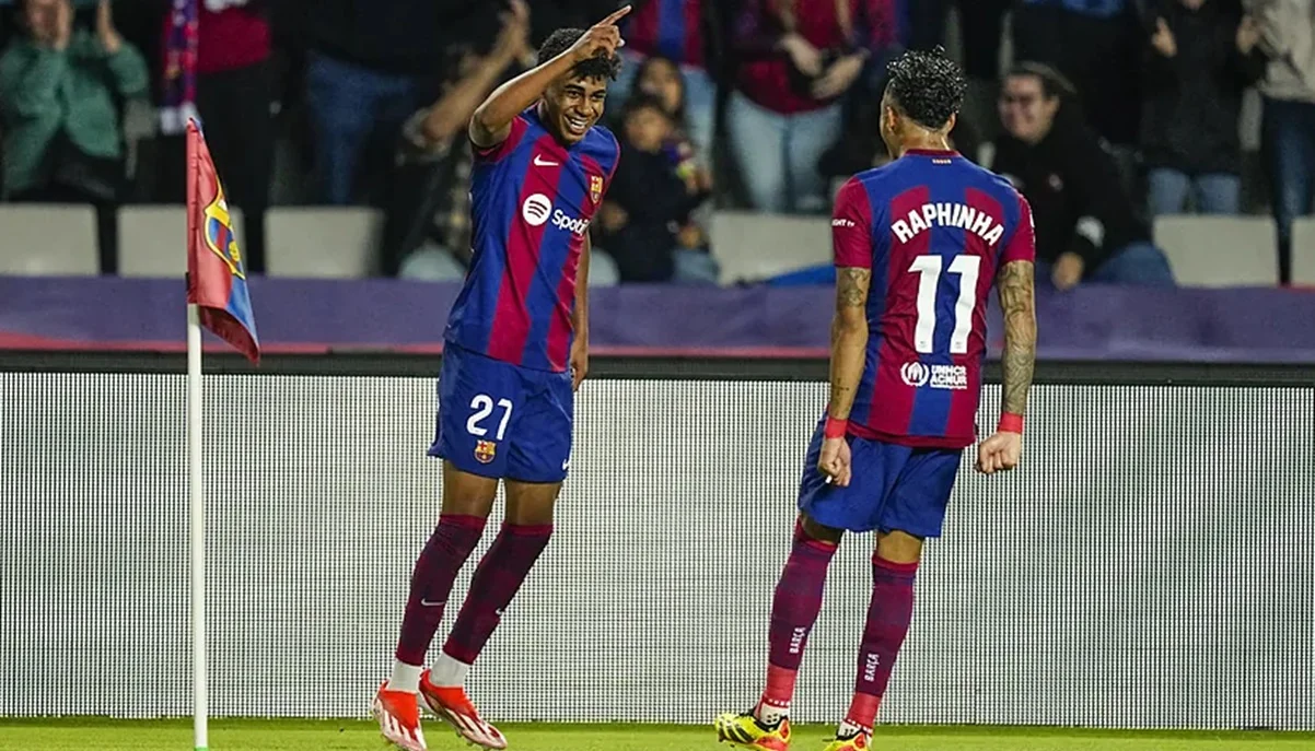 Нападающий Барселоны Рафинья решил лично поздравить Ламина Ямала с выигрышем приза лучшему молодому игроку.