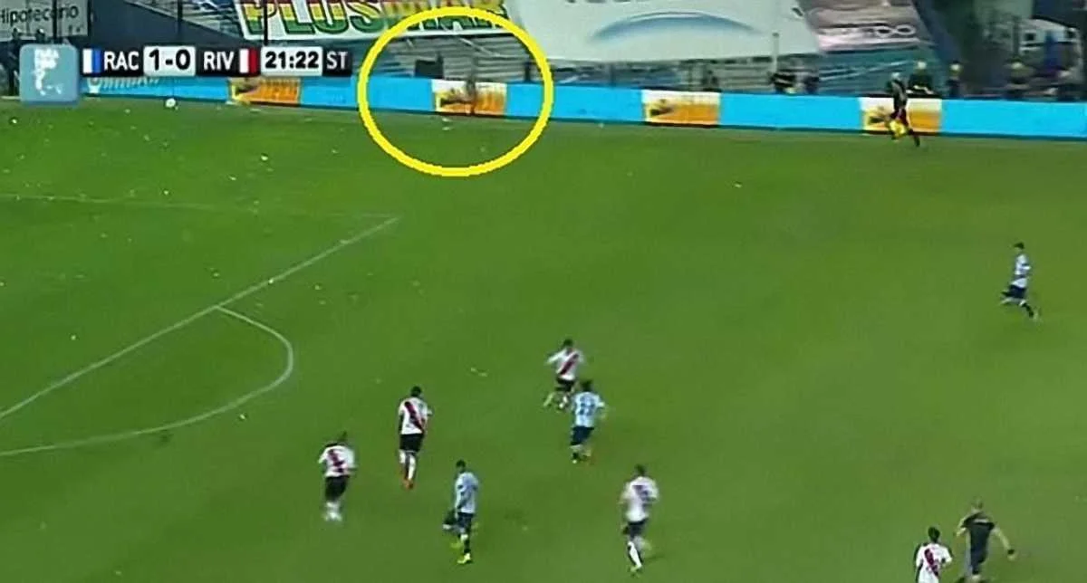 Во время матча аргентинского чемпионата между "Расингом" и "Ривер Плейт" зрители заметили странную фигуру, бегавшую вдоль боковой линии.