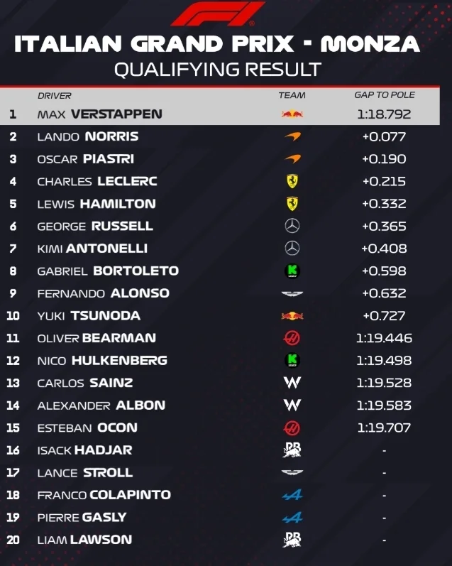 Завершилась квалификация Гран-при Италии. Отчет и результат квалификации Формулы-1 – в этой новости на "Футбол 24+".