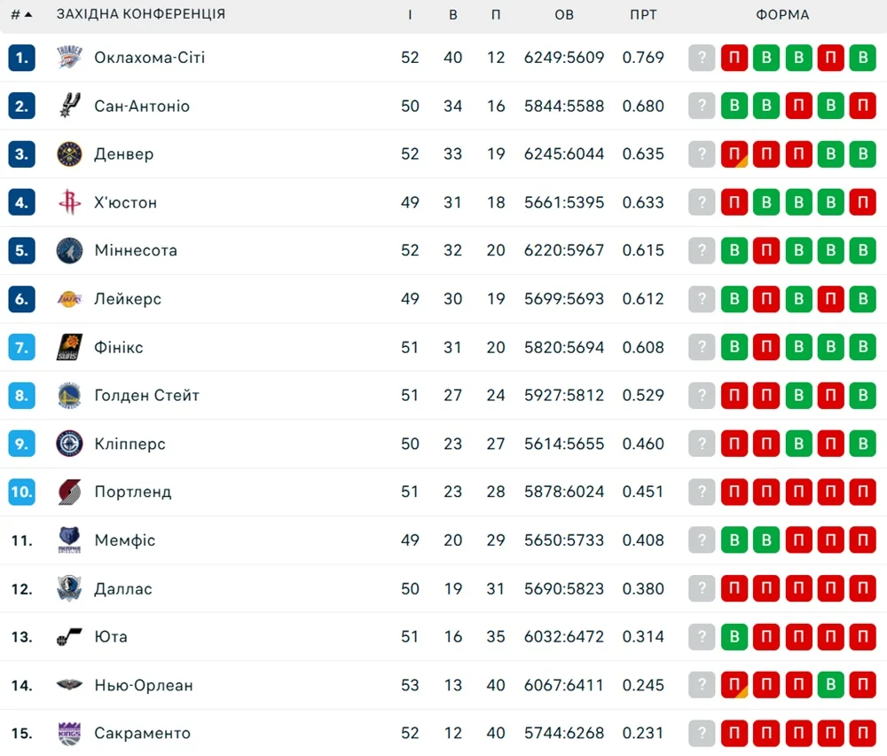 Нью-Йорк остается третьим на Востоке, а Денвер идет третьим на Западе.