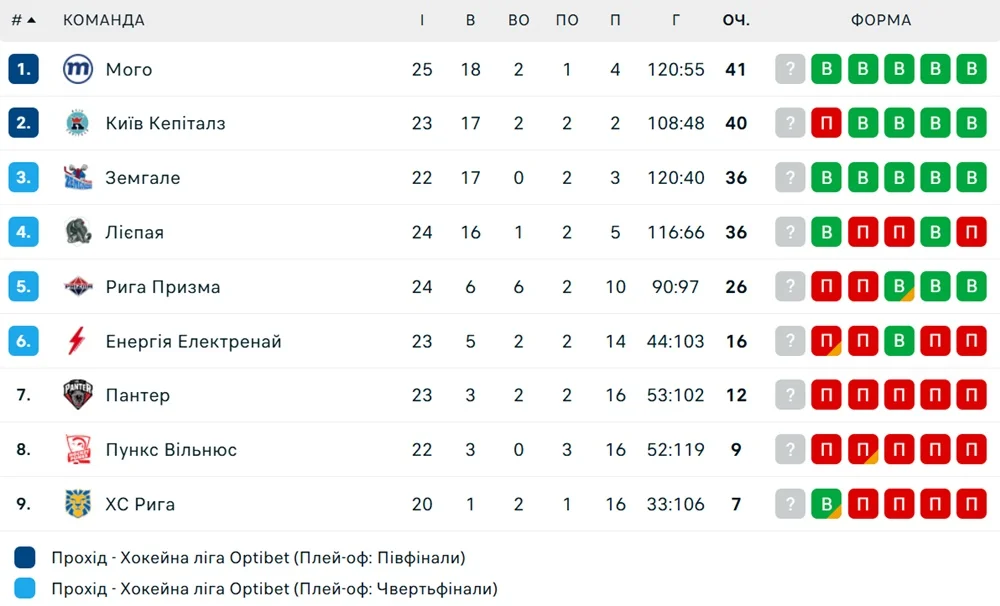 Имея 40 очков, Киев Кэпиталз занимает второе место в турнирной таблице. На первую строчку вышел Мого, у которого 41 пункт. Однако киевская команда имею в запасе две встречи. 22 декабря ее ждет поединок с командой Лиепая на ее льду.