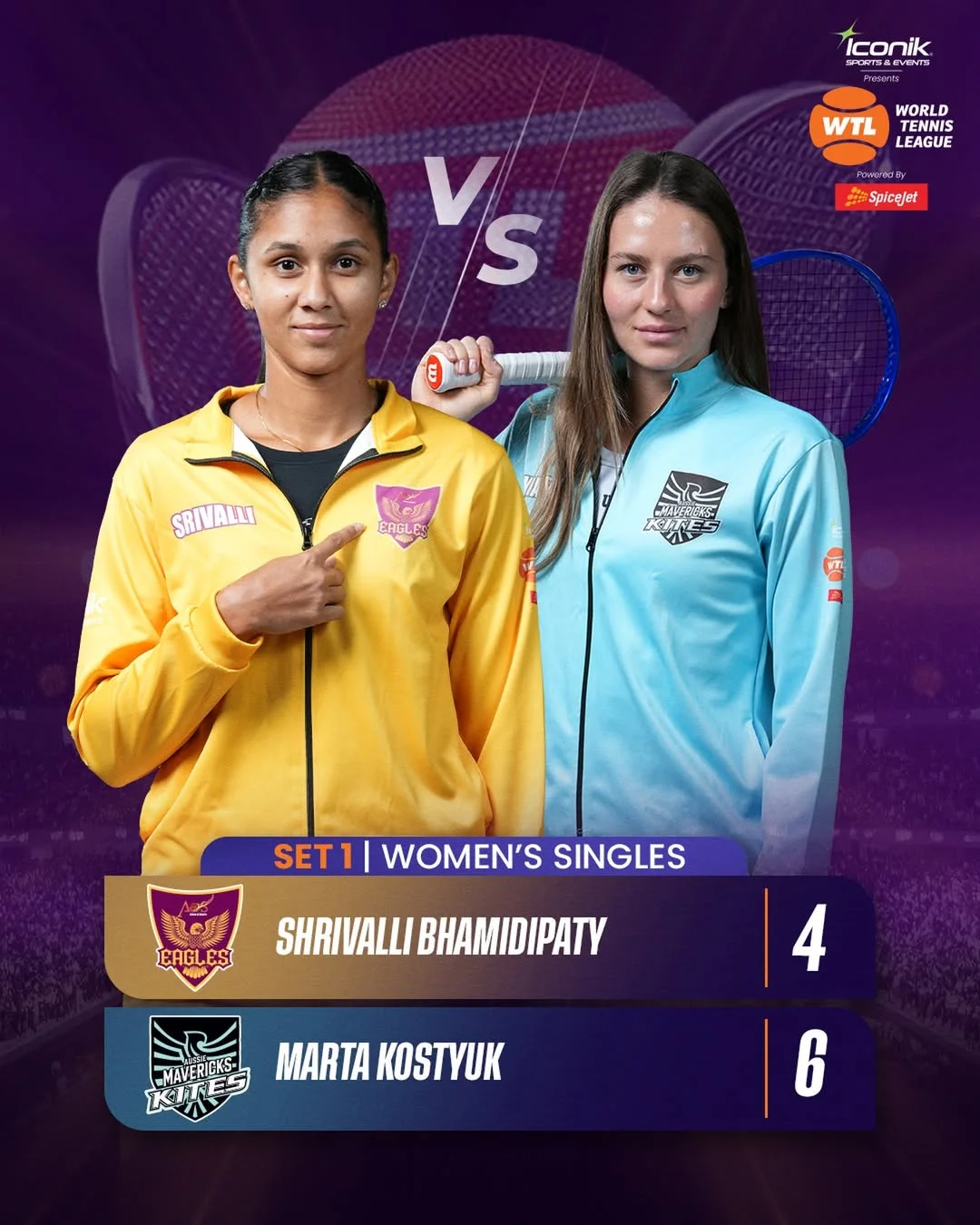 Марта Костюк, вторая ракетка Украины, в составе команды Aussie Mavericks Kites в финале турнира World Tennis League-2025 одержала победу в одиночном поединке, переиграв представительницу Индии Шривалли Бхамидипати (WTA № 398) из команды AOS Eagles – 6:3.