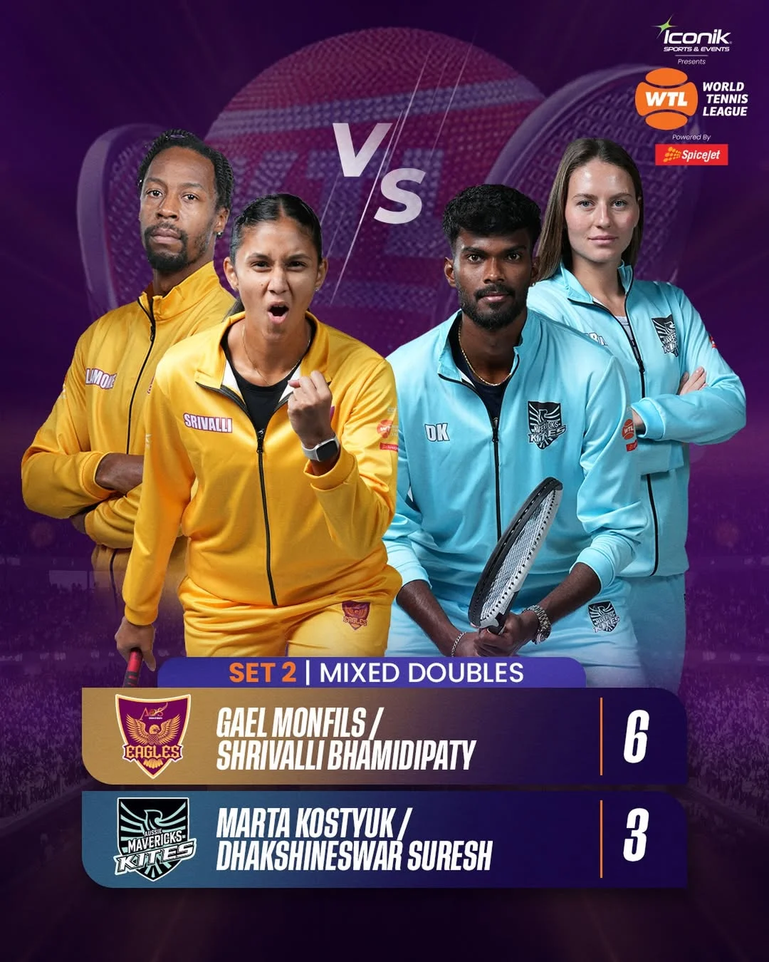 Гаэль Монфис (Франция) / Шривалли Бхамидипати (Индия) – Марта Костюк (Украина) / Дхакшинесвар Суреш (Индия) – 1:0 (6:3)