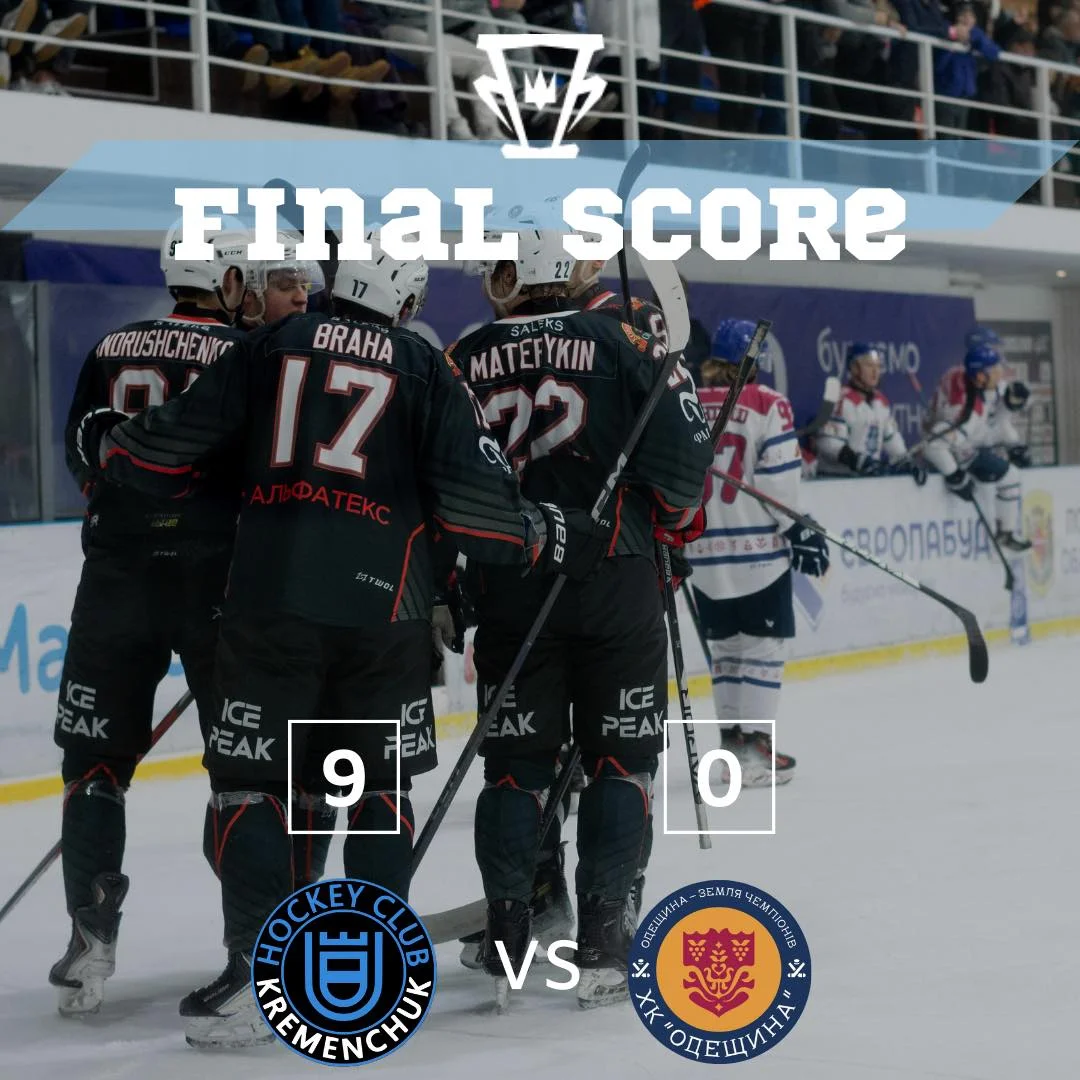 Беспомощность новичка сезона в борьбе против одного из флагманов украинского хоккея проявилась уже в первом периоде, когда шайба шесть раз побывала в воротах Одещины. Далее Кременчуг просто закрепил свое доминирование – 9:0.
