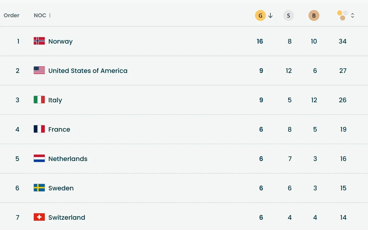 Топ-7 медального зачета Олимпиады 2026 года
