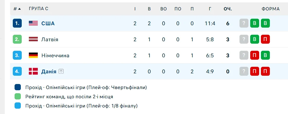 Как следствие, США с 6-ю баллами возглавляет квартет С, а Дания без очков последняя. В последнем туре группового турнира американцы сыграют с Германией, а скандинавы встретятся с Латвией.