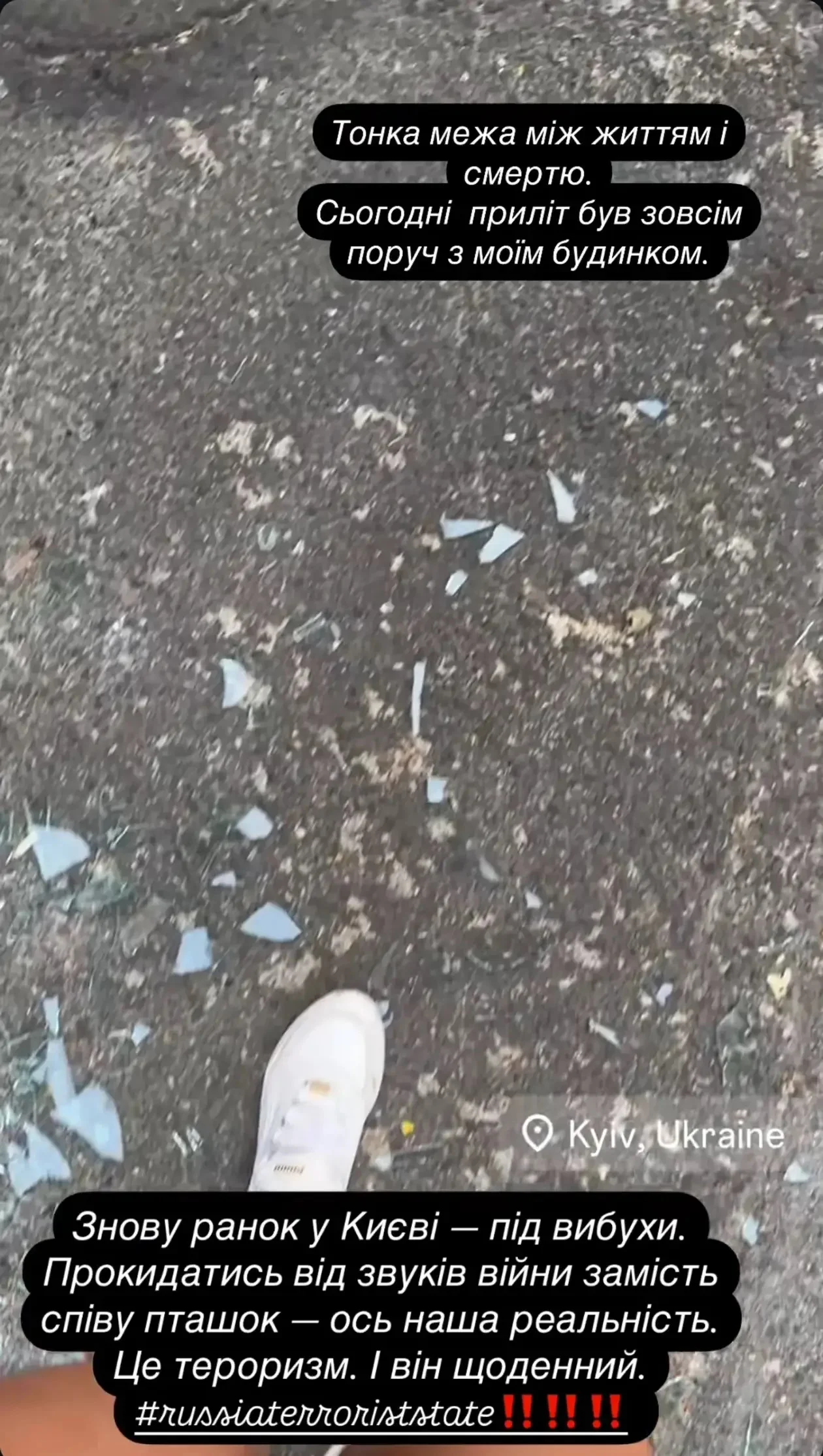 Опять утро в Киеве – под взрывы. Просыпаться от звуков войны вместо пения птичек – вот наша реальность. Это терроризм, и он ежедневный", – написала Мельник в сториз Instagram.