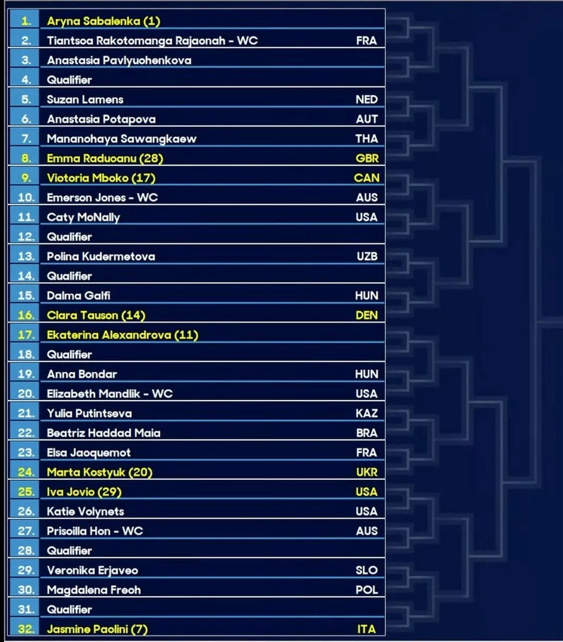 На Марту Костюк в первом раунде ждет представительница Франции Эльза Жакемо (WTA № 58). Даяна Ястремская проведет встречу против румынки Елены-Габриэлы Русе (WTA № 79), а Александра Олейникова, которая является дебютанткой мэйджора в Мельбурне, сыграет против грозной американки Мэдисон Киз (WTA № 9).