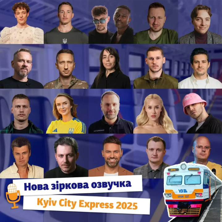 "Kyiv City Express благодарит 20 друзей железной дороги, которые стали голосами Киевской кольцевой электрички. Они сделали это с любовью к городу и уважением к железнодорожникам, которые уже завтра будут праздновать свой профессиональный день. Эти голоса вы услышите только две недели, а в течение этого времени познакомим вас с каждым героем ближе. Мы хотели добавить немного света в ваши будни, больше любви к Киеву. Продолжаем движение. Едем по графику. И с теплом", – сообщили в Kyiv City Express.