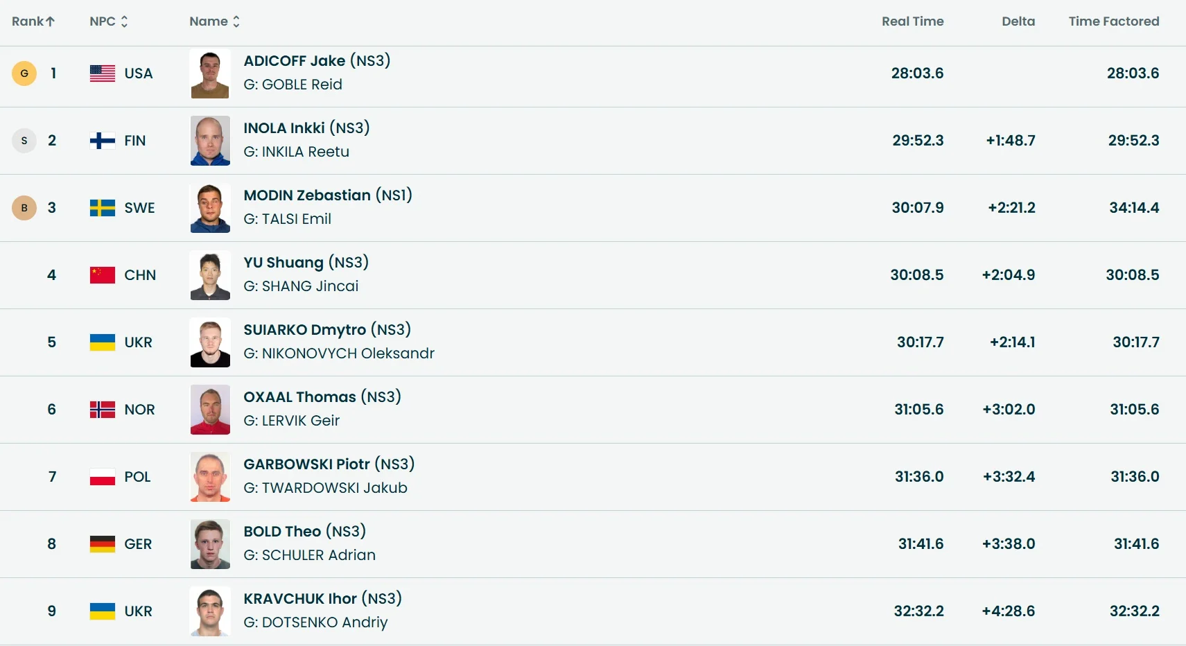 Дмитрий Суярко отстал от медального места меньше чем на 10 секунд. Еще один представитель сборной Украины Игорь Кравчук с гайдом Андреем Доценко занял 9-е место.