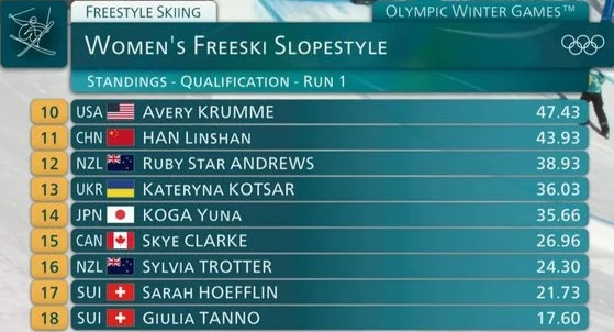 25-летняя спортсменка соревновалась под 23 номером и, чтобы попасть в финал, должна была финишировать в топ-12 лучших фристайлисток по итогам двух попыток.