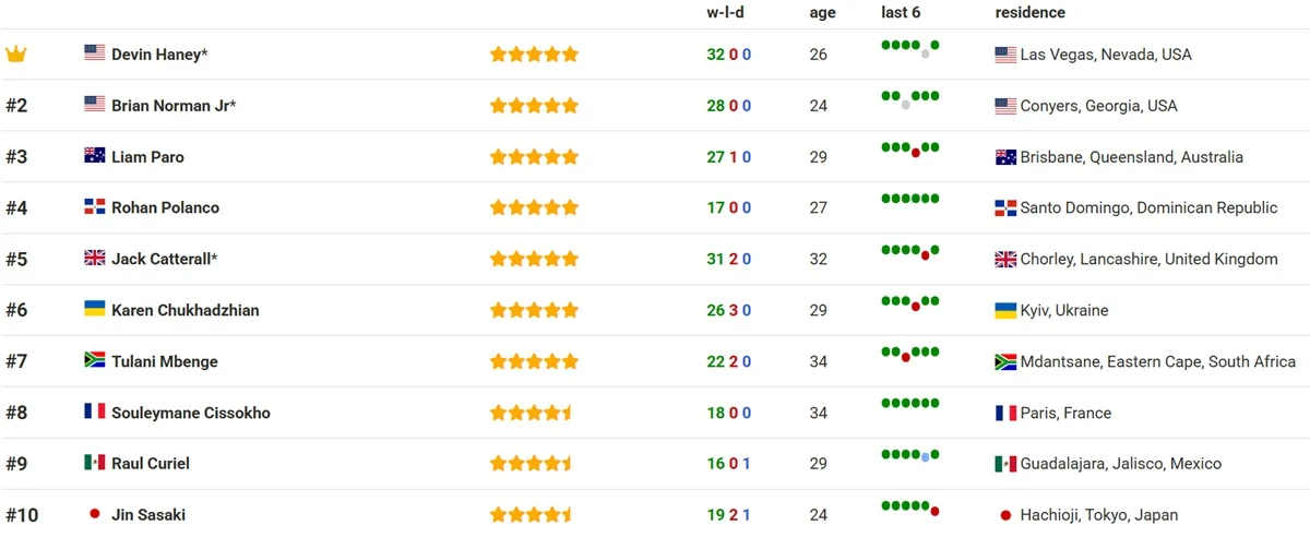 Рейтинг BoxRec в полусреднем весе возглавляет непобедимый американец Дэвид Хэйни. Он уже в следующем месяце проведет поединок против земляка Брайана Нормана, который располагается на втором месте.