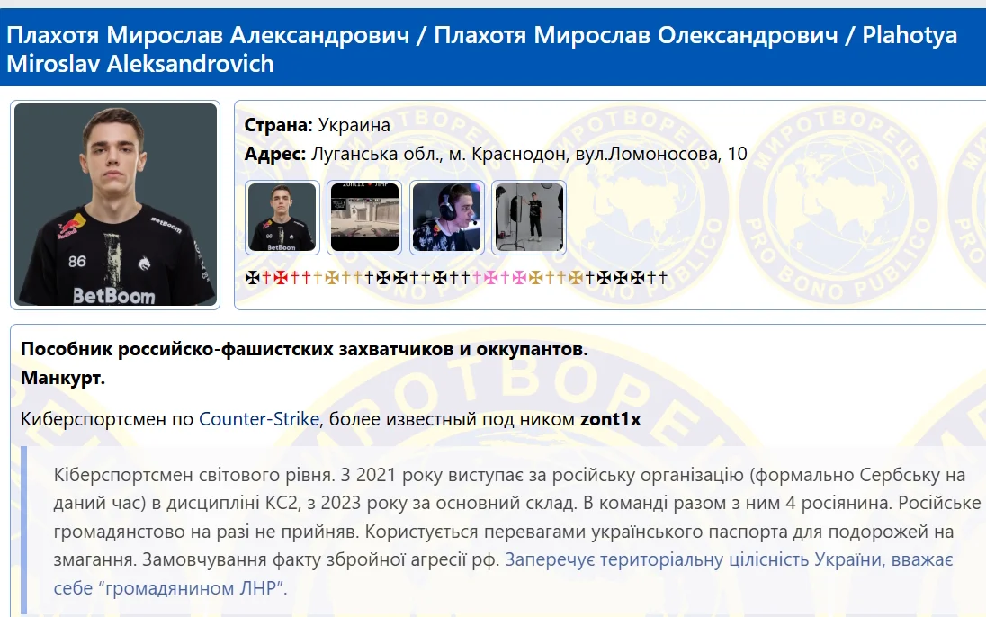 В базу сайта "Миротворец" внесли известного игрока в Counter Strike 2 под ником Zont1x.