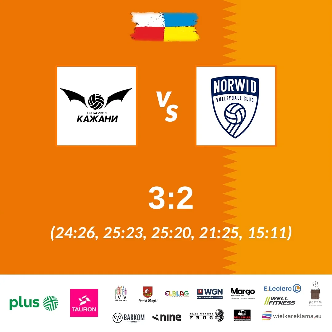 Украинская команда проиграла первый сет, но смогла вернуться в игру. Выиграв вторую партию, она общий счет сделала равным, а затем повела вперед, победив и в третьем сете. К сожалению, развить преимущество волейболисты клуба Барком-Кажаны не смогли и судьба встречи решилась на тай-брейке. Доигровку львовяне провели мощно (имели преимущество 3:0, а дальше – 9:6) и забрали сет, а также матч себе. Это первая победа украинского коллектива в новой кампании польской ПлюсЛиги-2025/26.