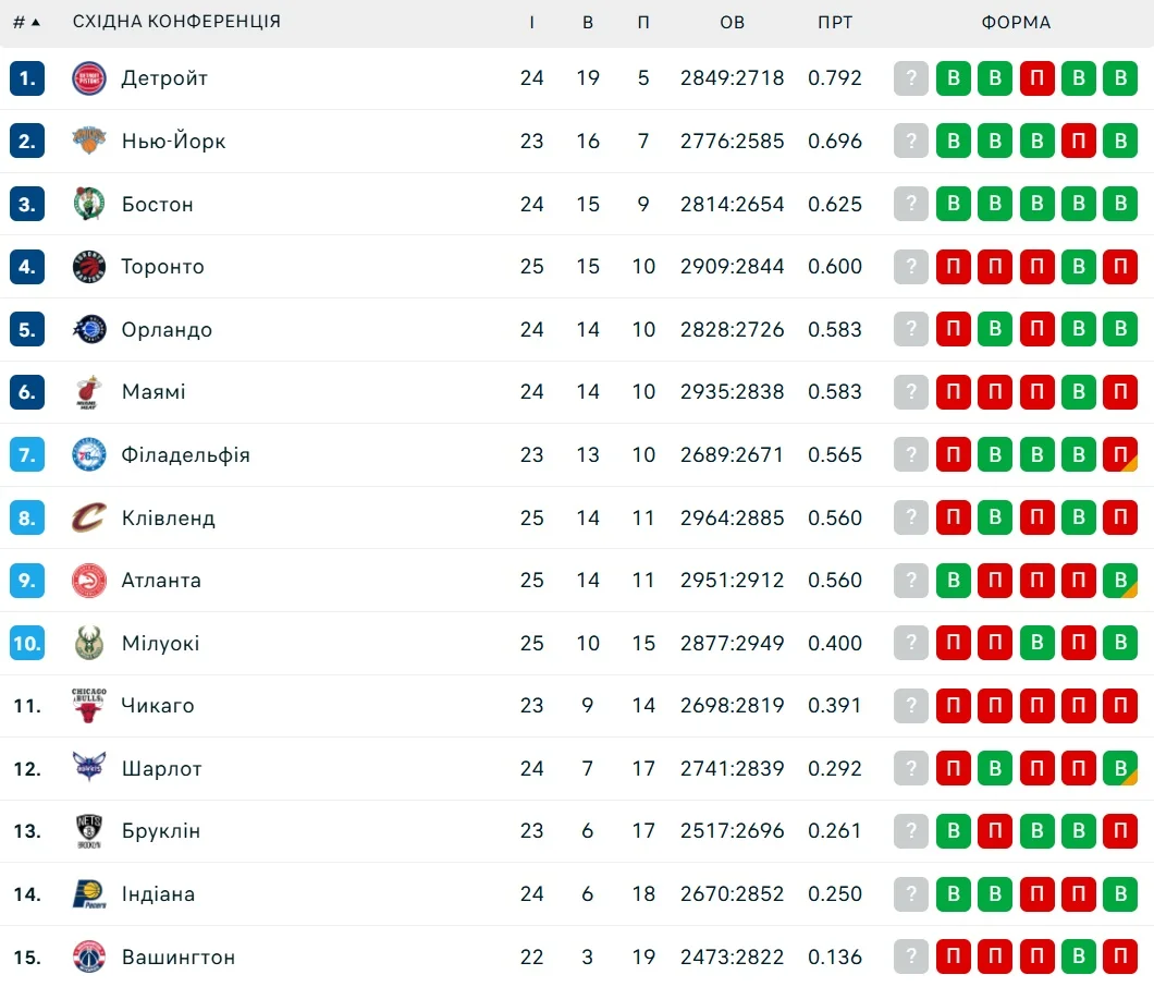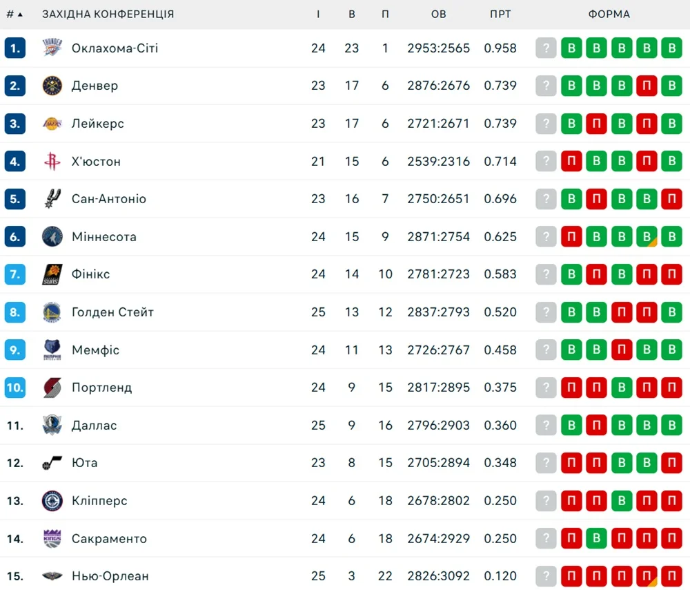 Положение в таблицах конференции НБА