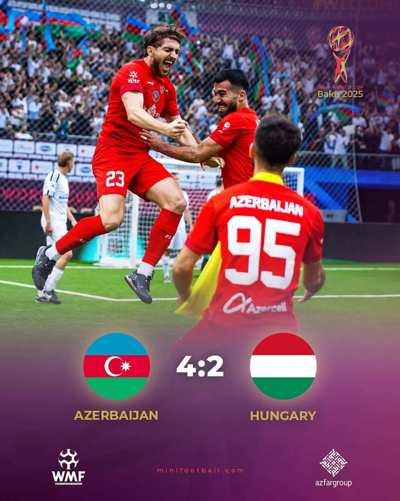 У фінальному матчі на Мундіалі підопічні Віталія Борисова переграли кривдників збірної України – Угорщину. Блискучий старт з трьома голами за 10 хвилин дозволив Азербайджану впевнено заволодіти ініціативою в матчі й довести гру до заслуженої перемоги.
