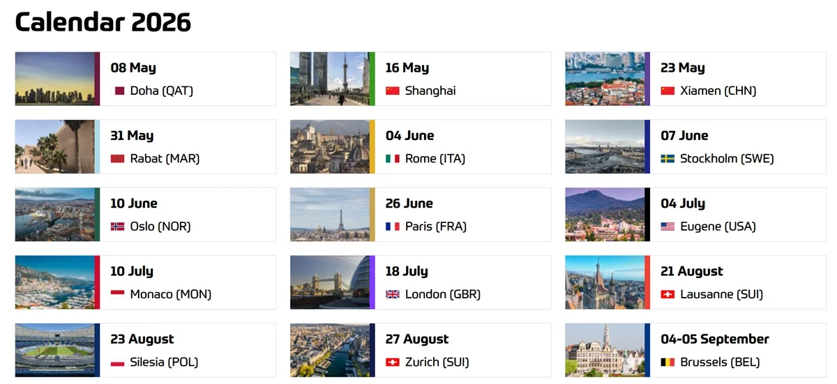 Оргкомітет Діамантової ліги з легкої атлетики оголосив на своєму офіційному сайті розклад на 2026 рік.