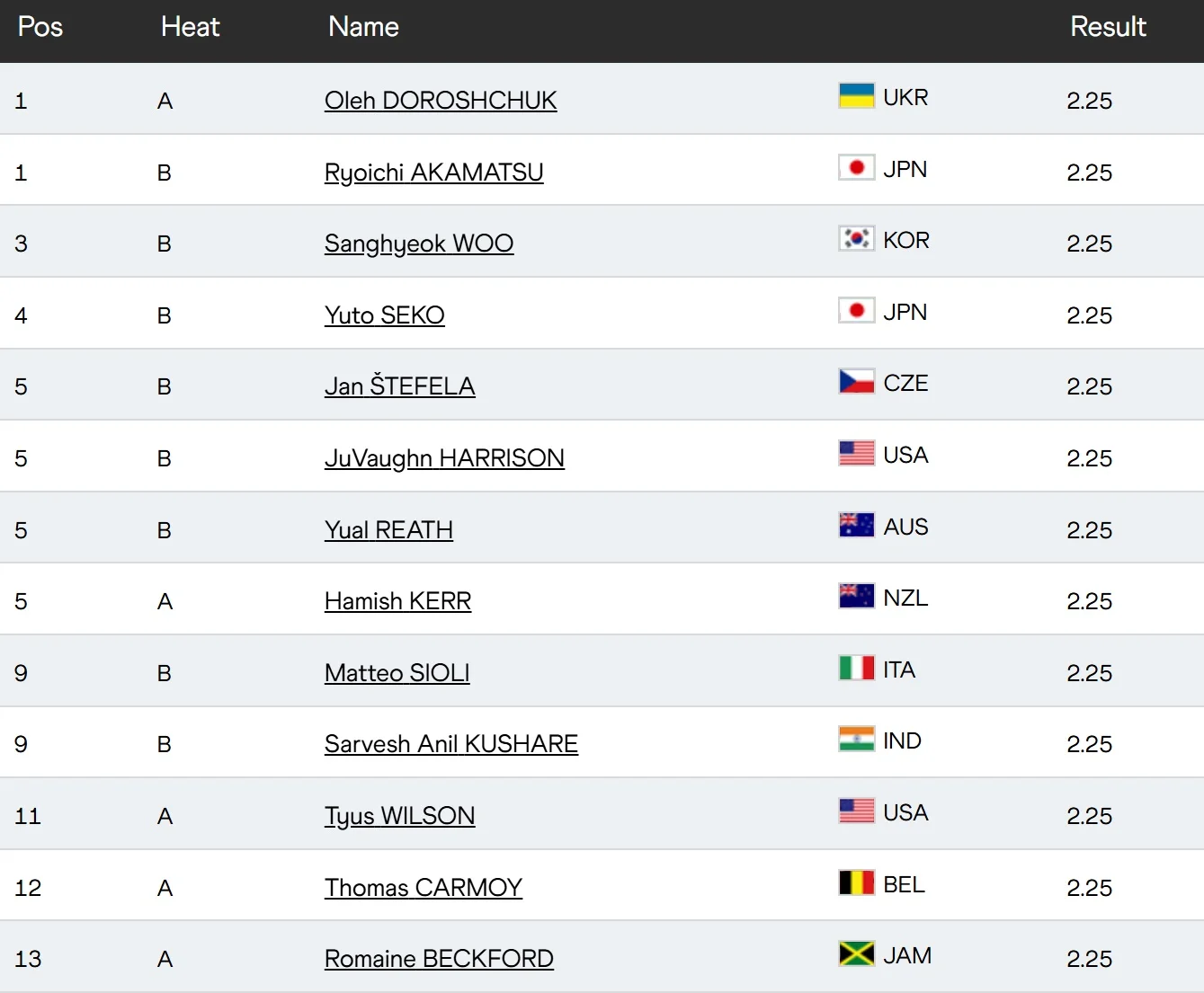 Підсумковий протокол кваліфікації ЧС-2025 з легкої атлетики у стрибках у висоту (чоловіки)