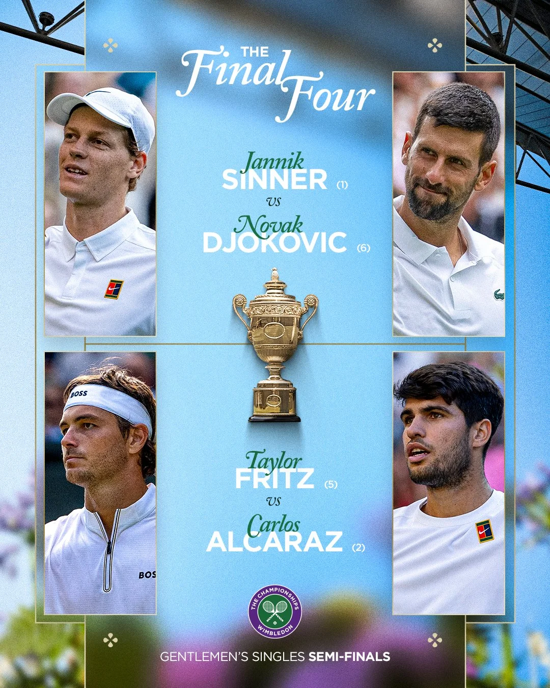 Новак Джоковіч вийшов у свій 52-й півфінал турніру серії Grand Slam. Там на серба чекає зустріч із Янніком Сіннером. У другій зустрічі 1/2 фіналі зійдуться американець Тейлор Фріц та іспанець Карлос Алькарас.