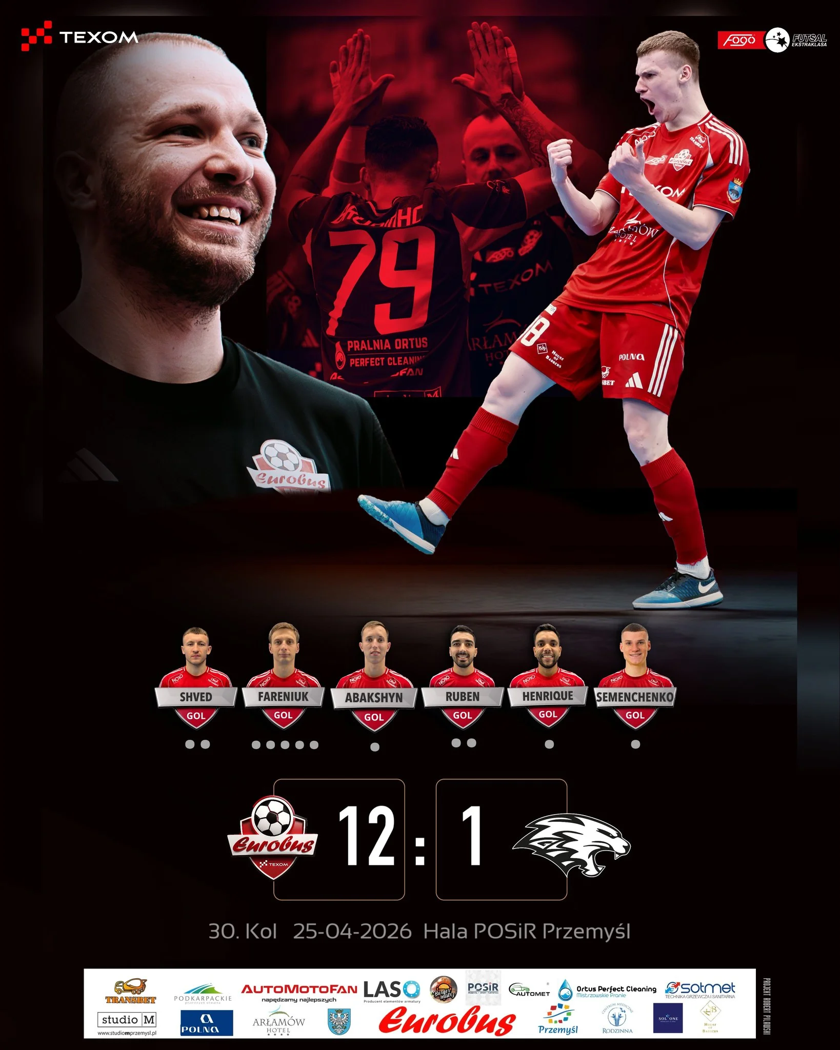 У завершальному турі "регулярки" Євробус, за який виступають одразу п’ять представників української збірної, обіграв вдома команду Ополе – 12:1. Автором п’яти голів у поєдинку став українець Артем Фаренюк.
