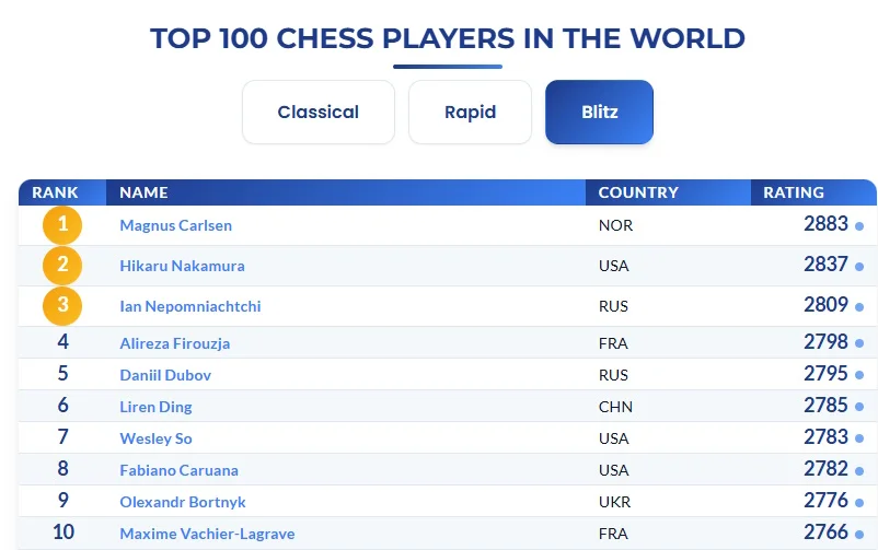 У рейтингу ФІДЕ відбулися зміни – п'ять українських гросмейстерів потрапили у топ-100 найкращих гравців у бліц.