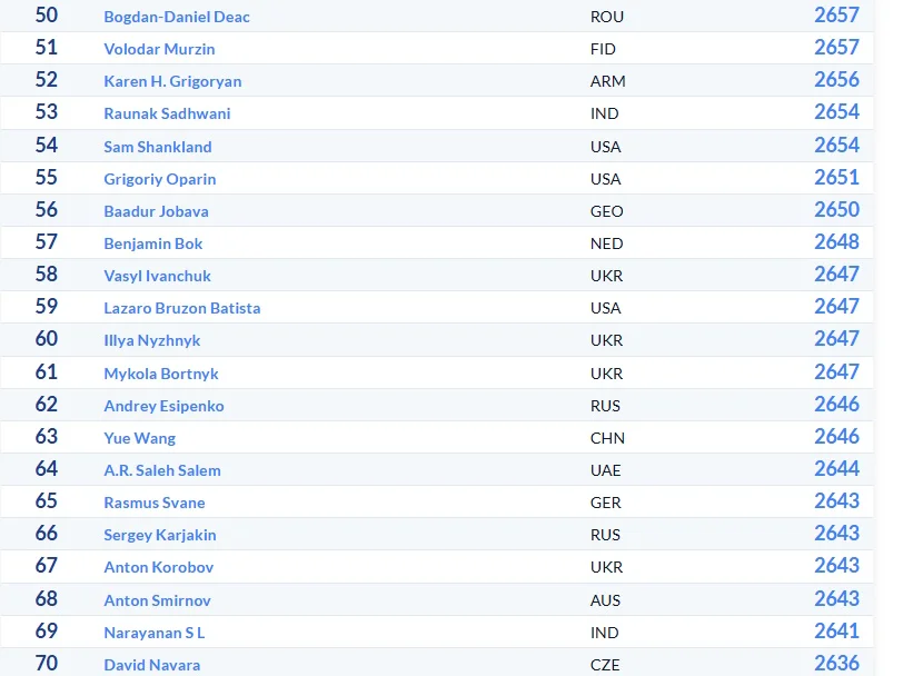 Ілля Нижник став 60-м, одразу після нього в таблиці опинився Микола Бортник, а третім українцем в рейтингу найкращих став Антон Коробов – він на 67-му місці в оновленій таблиці ФІДЕ.
