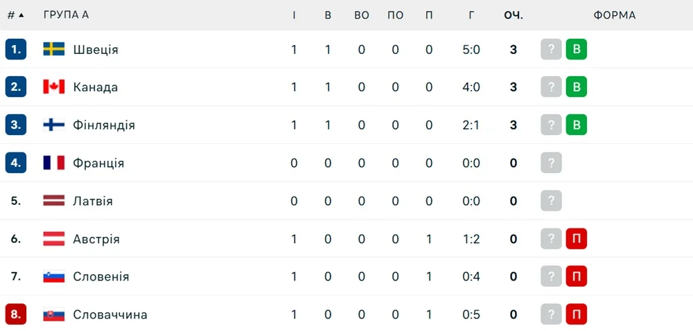 Збірна Канади, яка на ЧС-2024 програла Швеції (2:4) у матчі за третє місце, стартувала зустріччю з командою Словенії. Європейцям довелося несолодко – канадці здобули переконливу перемогу з рахунком 4:0.