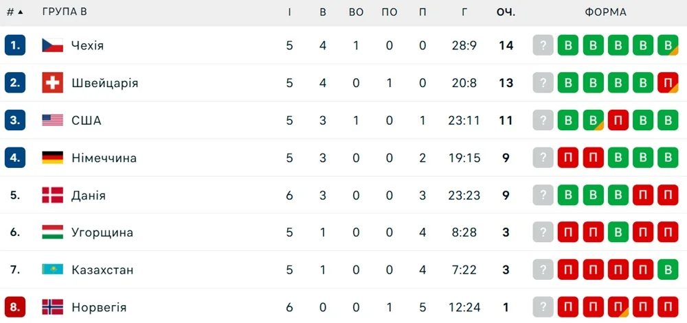 Збірна Данії переграла з рахунком 6:3 команду Норвегії, яка залишається беззаперечним аутсайдером групи В (1 очко після 6 матчів).
