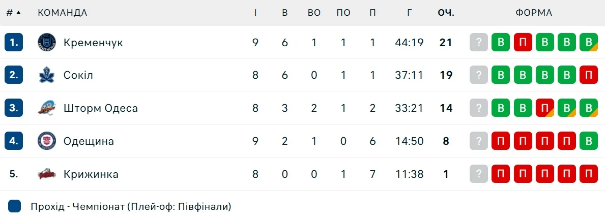 Турнірна таблиця чемпіонату України з хокею