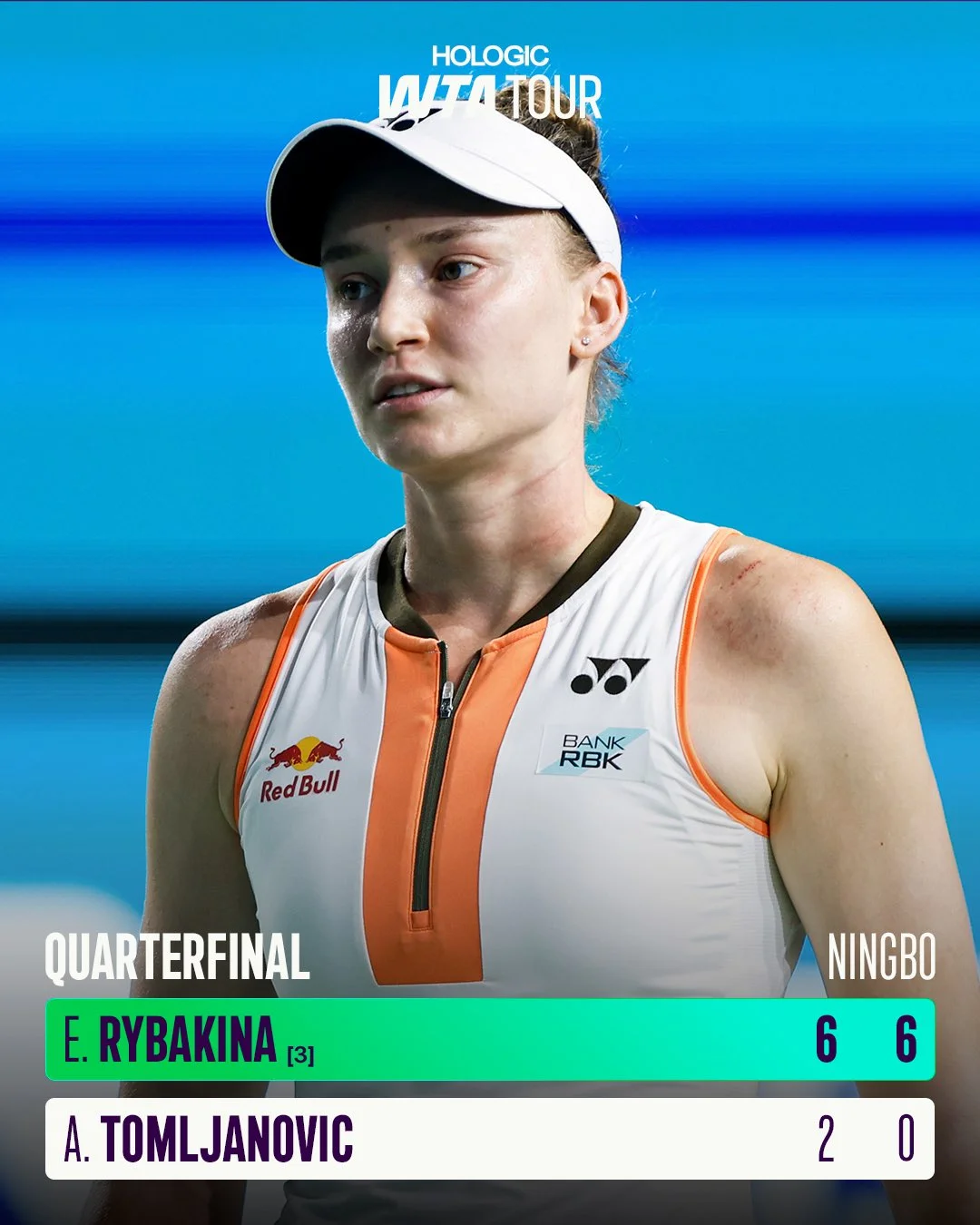 В 1/2 фіналу на Рибакіну чекає зустріч з Жасмін Паоліні, яка у чвертьфіналі здолала Белінду Бенчіч зі Швейцарії.