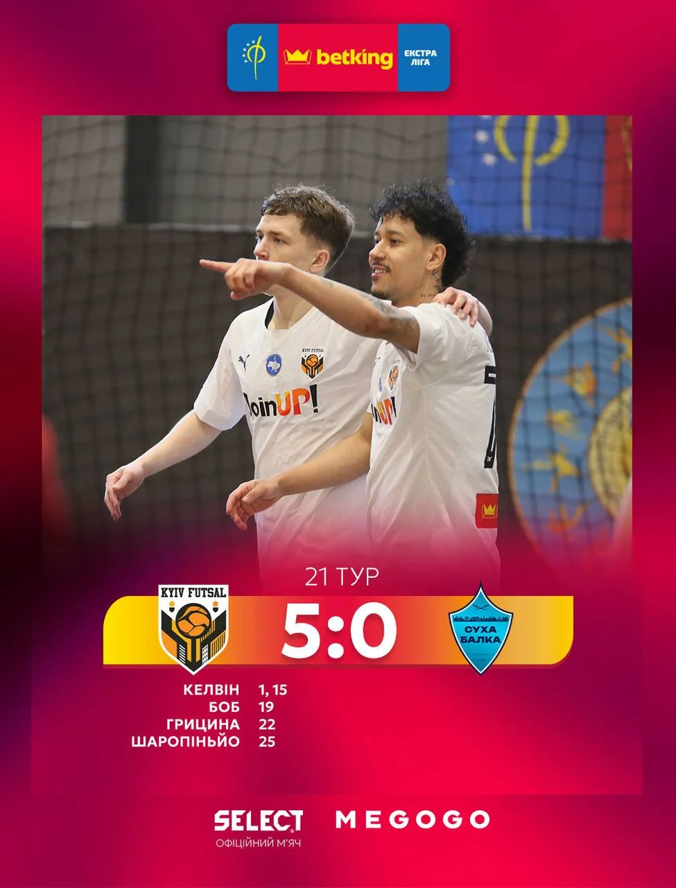 В іншому поєдинку Київ Футзал не зазнав ніяких проблем із Сухою Балкою. Перемігши 5:0, кияни взяли реванш у суперників за поразку у першому колі та підняли собі настрій напередодні півфіналу Кубка України. У ньому Київ Футзал 9 квітня зустрінеться з ХІТом.