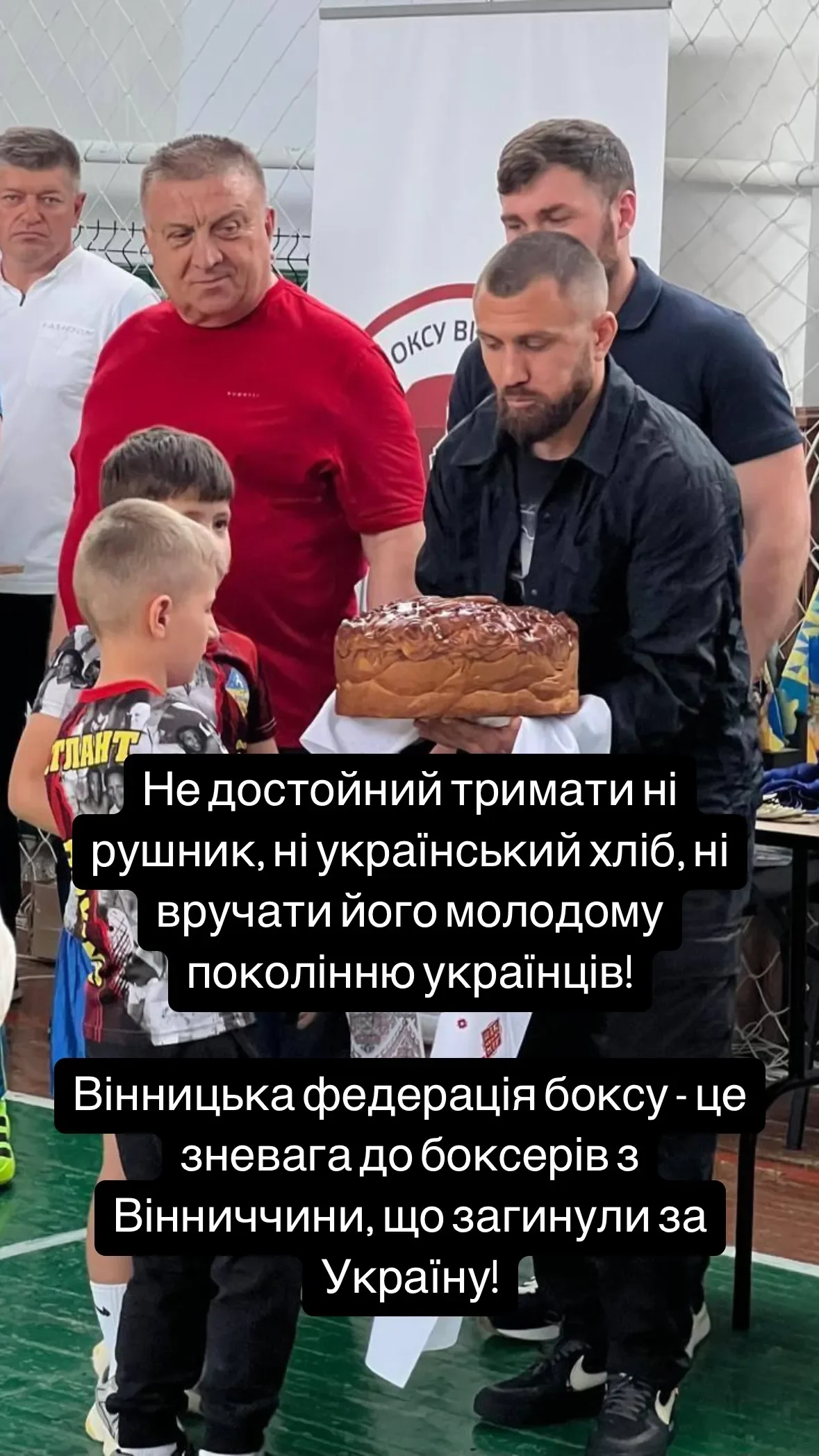 "Не гідний тримати ні рушник, ні український хліб, ні вручати його молодому поколінню українців. Вінницька федерація боксу – це зневага до боксерів, які загинули за Україну", – написав Ярмак на своїй сторінці у соціальній мережі Instagram.
