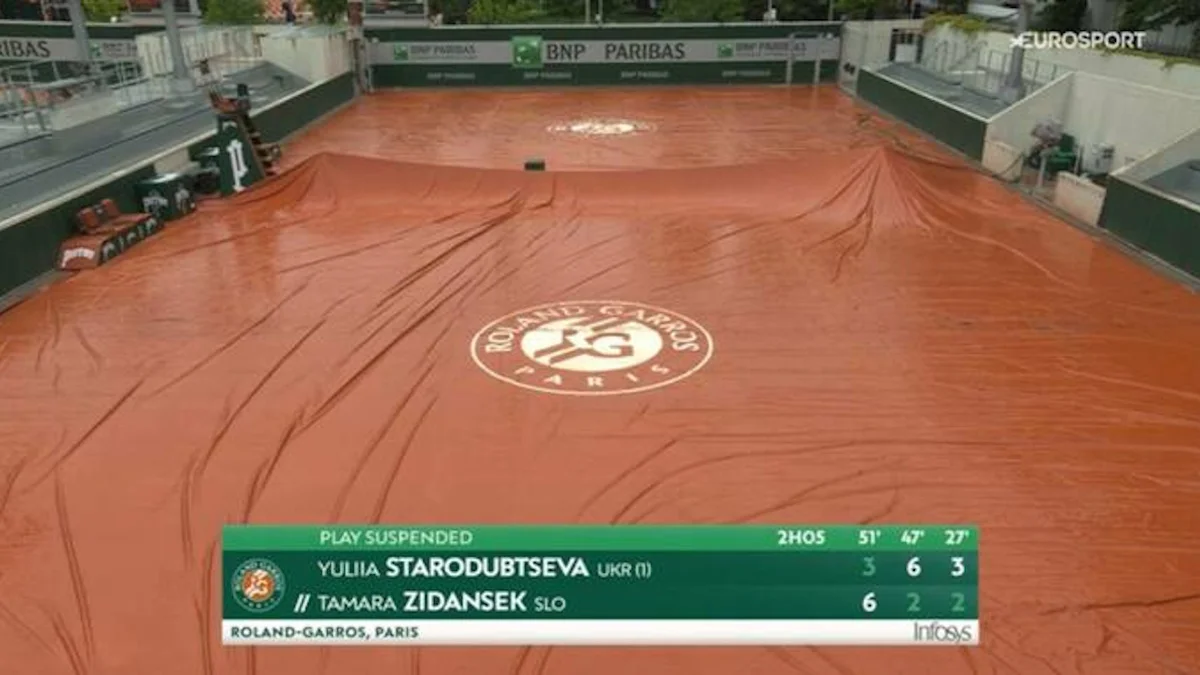 Непогода зіпсувала протистояння Юлії Стародубцевої (WTA № 86) та Тамари Зіданшек (WTA № 154) у кваліфікації відкритого чемпіонату Франції з тенісу.