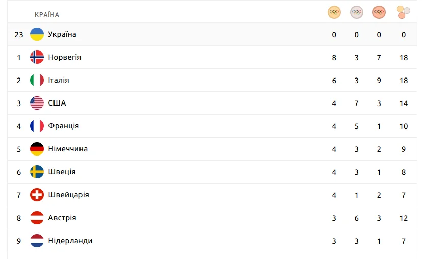 Збірна України поки залишається без медалей Олімпіади 2026.