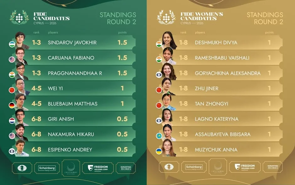 Цікаво, що решта зустрічей 2-го туру також завершилися внічию – результативних партій серед жінок на турнірі поки не було. Отже, всі 8 учасниць мають у своєму доробку по одному очку з двох можливих.