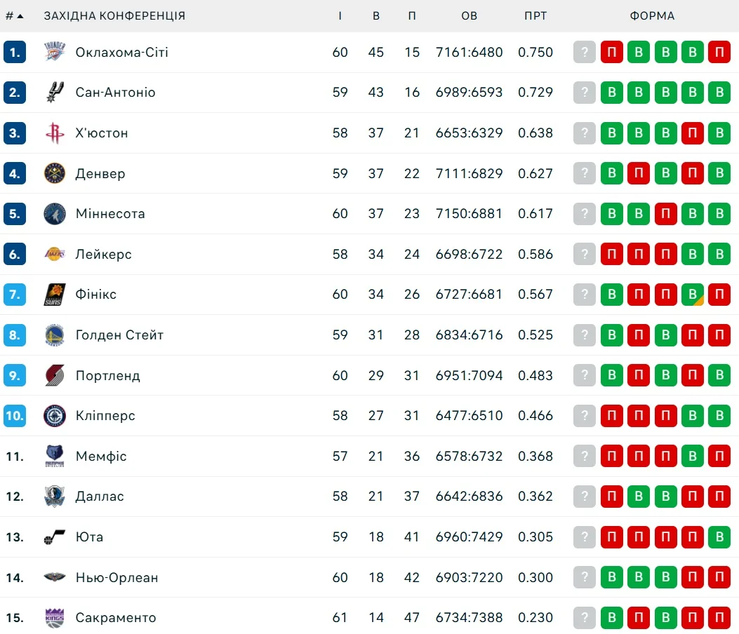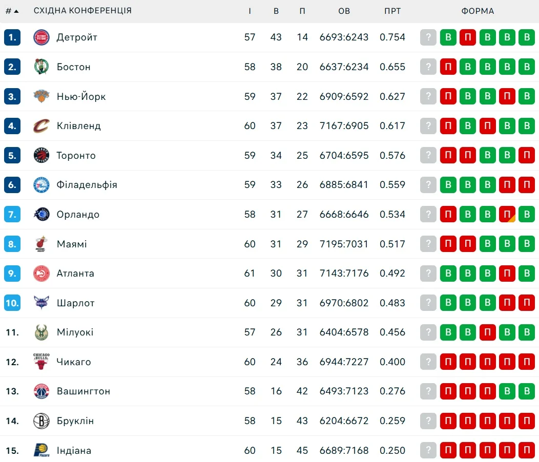Турнірне становище у конференціях