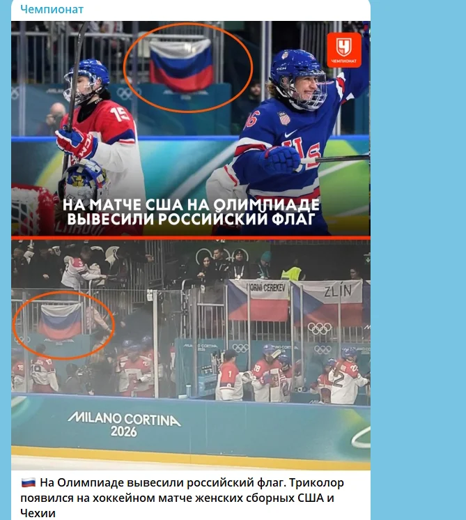Під час хокейного матчу збірних Чехії та США хтось із вболівальників вивісив російський прапор на трибунах. Це помітили російські пропагандистські ЗМІ.