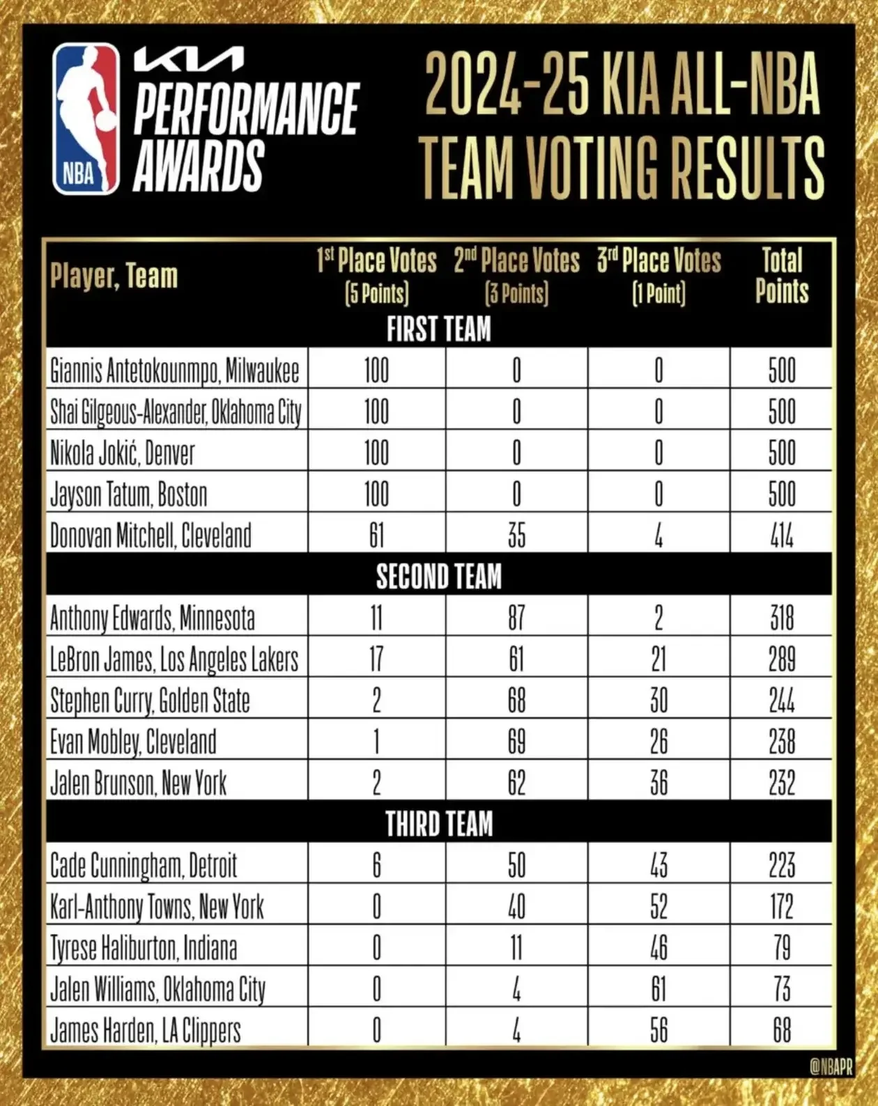 НБА опублікувала символічні збірні чемпіонату 2024/25 – Каррі та Леброн не потрапили до першої команди