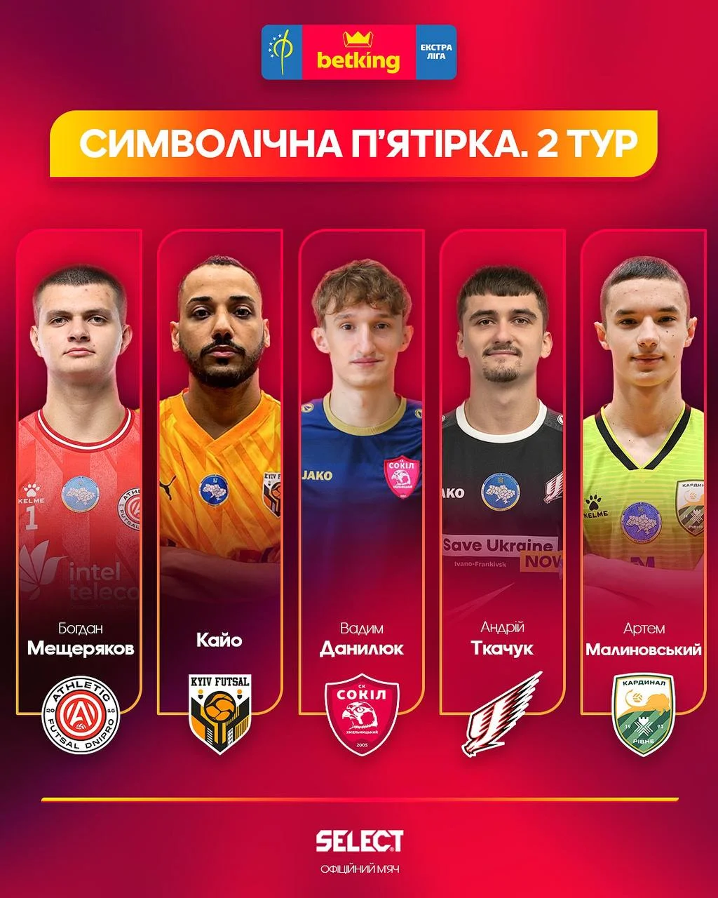 Обрана пʼятірка найкращих гравців 2-го туру чемпіонату України з футзалу – два автори хет-триків