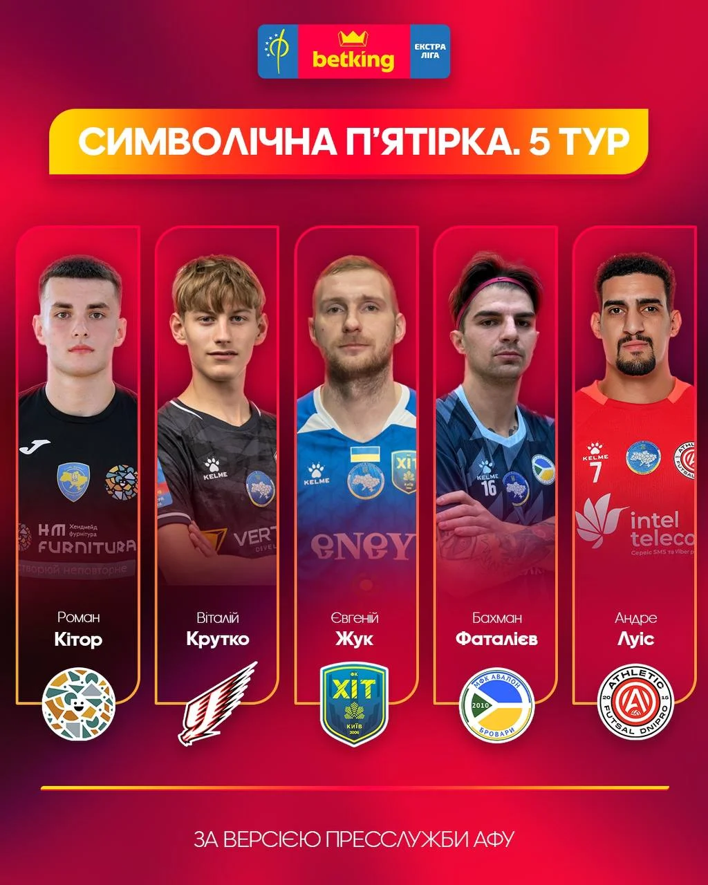 Обрана пʼятірка найкращих гравців 5-го туру чемпіонату України з футзалу – автори двох покерів