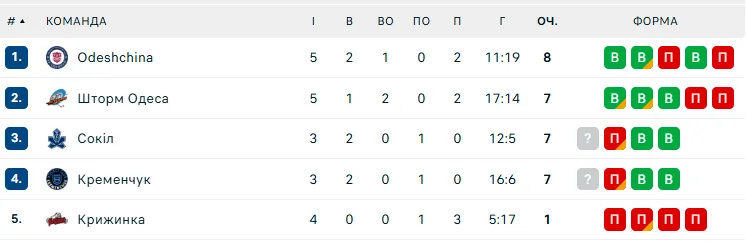 Після цієї перемоги Одещина має вісім очок і тимчасово очолює турнірну таблицю чемпіонату, випереджаючи Кременчук та Сокіл, які мають по сім балів і на два матчі менше.
