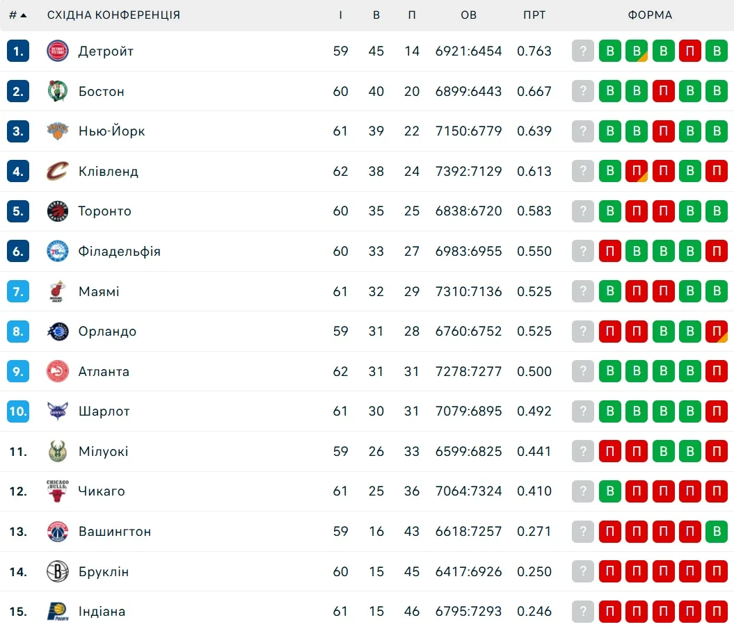 Турнірне становище у конференціях