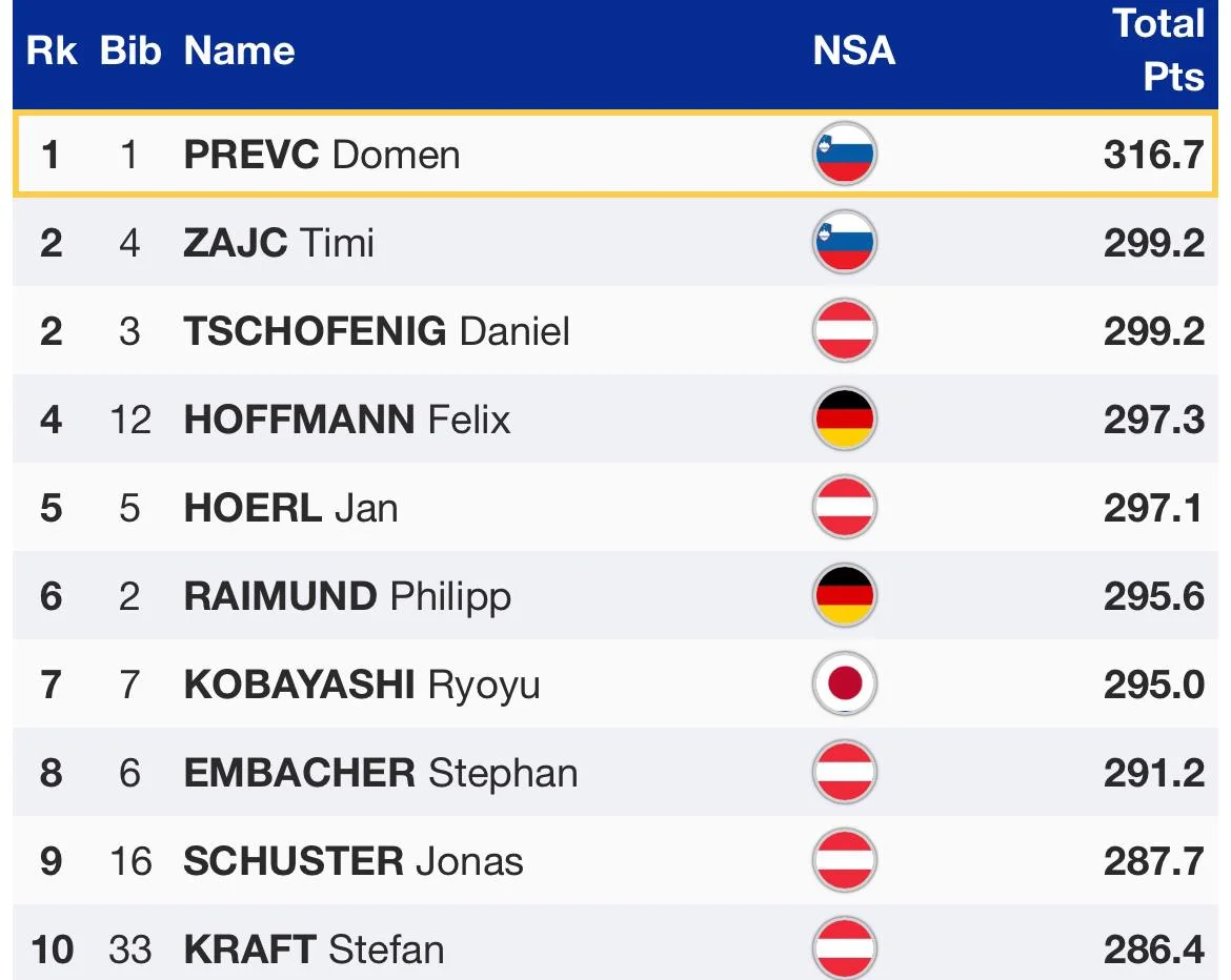 До другого раунду змагань вийшли 30 найкращих за підсумками стартового раунду. Переможцем етапу став ще один представник збірної Словенії Домен Превц – він 17,5 бала виграв у Зайца та австрійця Даніеля Чофеніга, які розділили друге місце.
