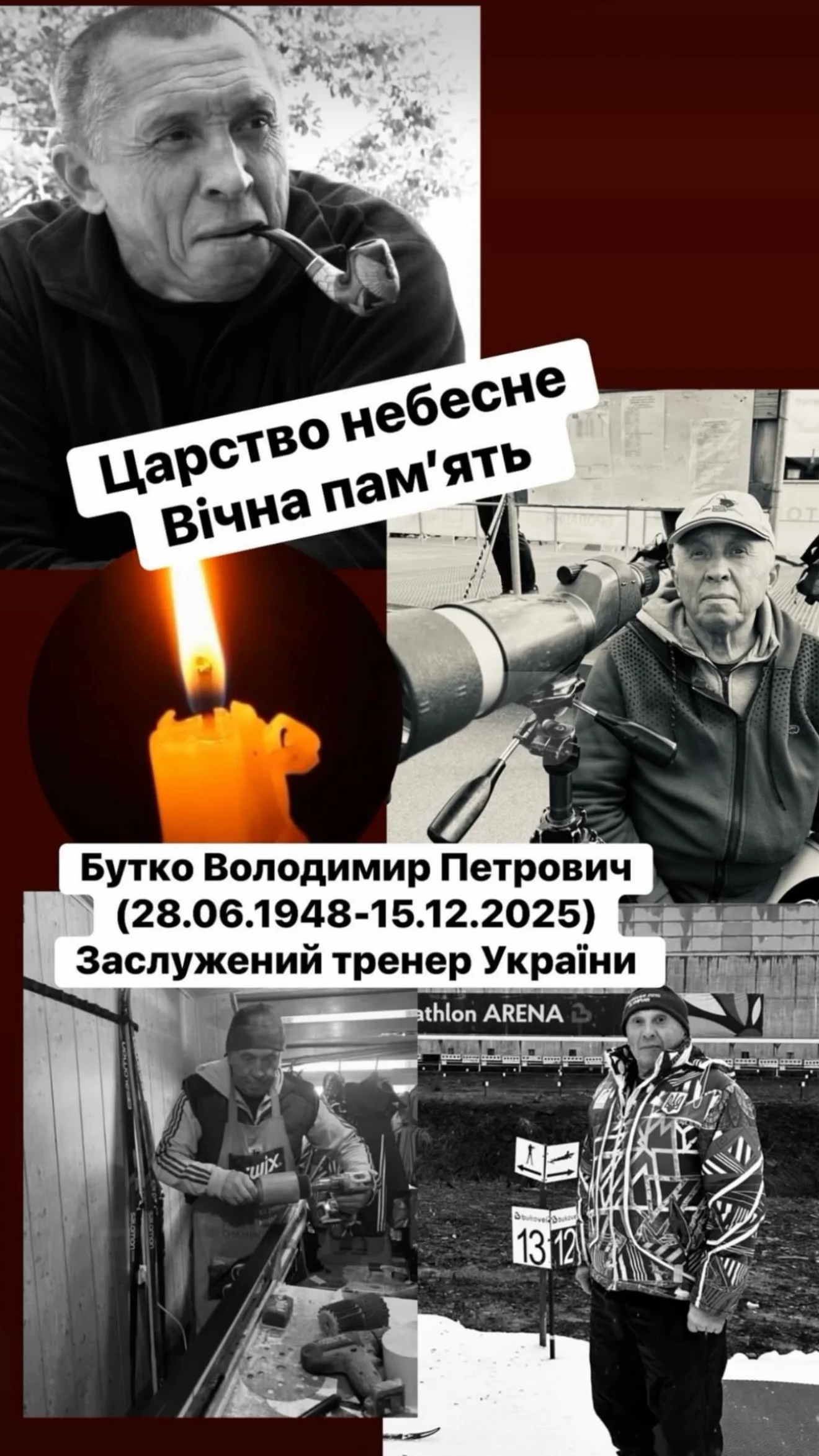 15 грудня помер заслужений тренер України з біатлону Володимир Бутко. Про це повідомила біатлоністка збірної України Олена Городна в Instagram.