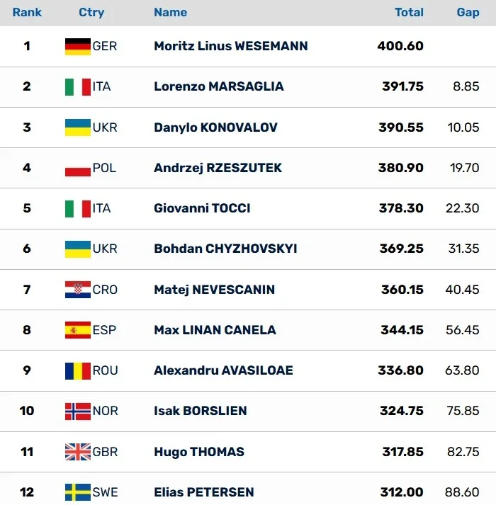Молодий український спортсмен набрав 390,55 бала, поступившись лише Марітцу Лінусу Веземанну з Німеччини та італійцю Лоренцо Марсальї.