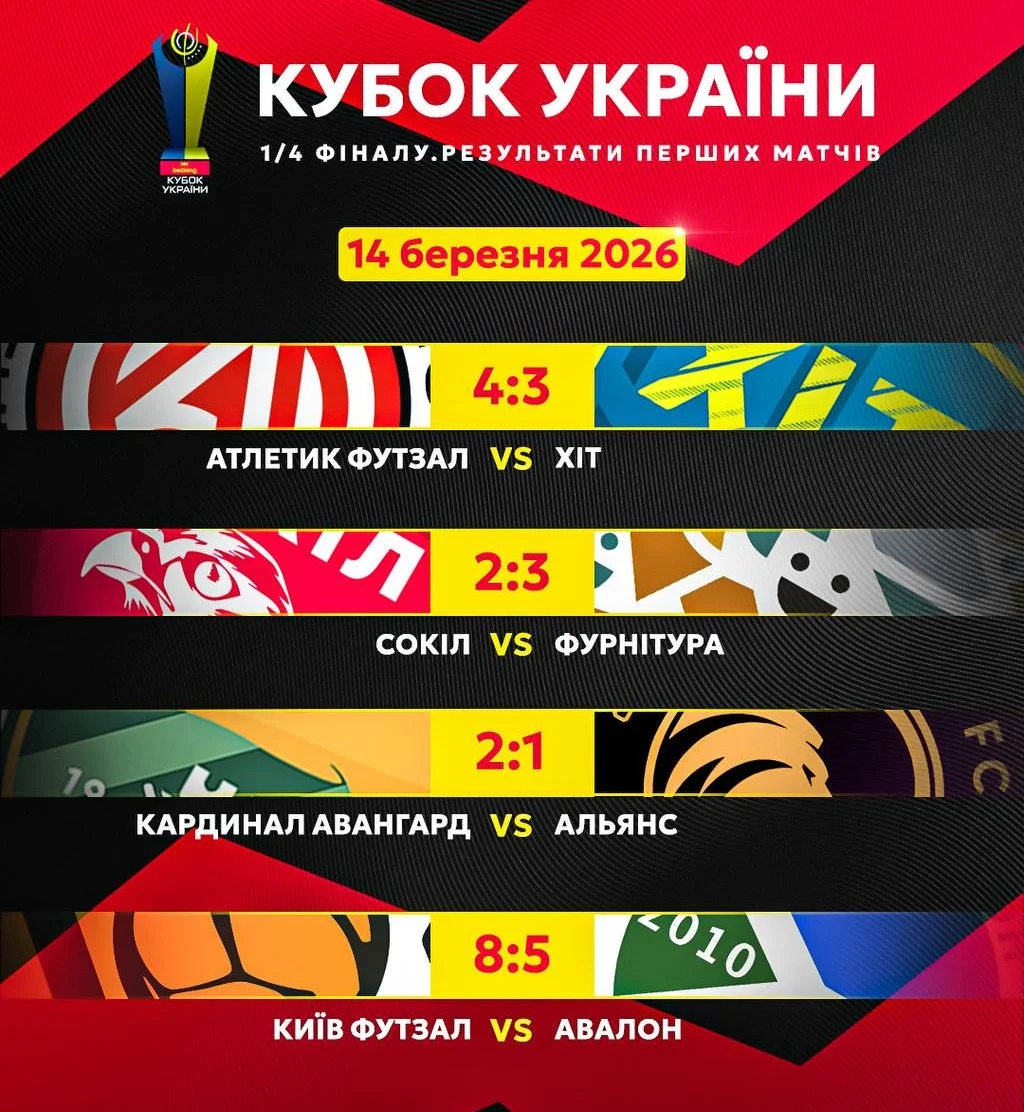 Відбулися перші поєдинки 1/4 фіналу розіграшу футзального Кубка України. Результати та звіт – у цій новині "Футбол 24+".