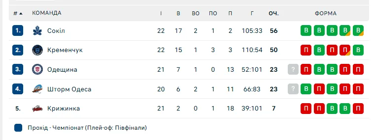 Кременчук продовжує перебувати на другій сходинці турнірної таблиці, на три очки відстаючи від Сокола. Шторм з 23 пунктами розташувався на четвертій позиції.