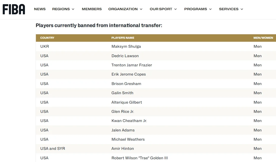 Міжнародна федерація баскетболу (ФІБА) оновила список баскетболістів, на яких накладено трансферний бан. Туди потрапив і Максим Шульга.