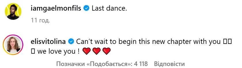 Еліна Світоліна залишила коментар під повідомленням Гаеля Монфіса.